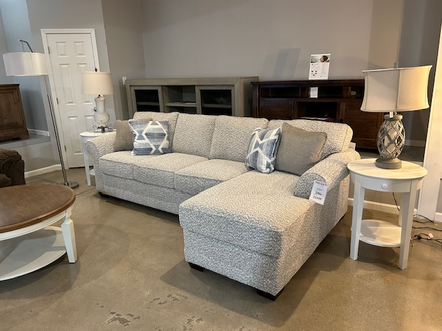 Right facing chaise lounge and left facing sofa combination makes for a small and comfy sectional! Dressed in a neutral beige with accent pillows, it will fit most any space!Read More