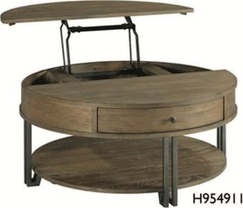The Alexvale Saddletree Wood Round Lift-Top Coffee Table is crafted of rubberwood solids and oak veneers. Features unique architectural legs and extra storage under its stylish lift-top.Read More