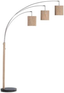 This dramatic floor lamp features three gracefully curved arms, each topped with a natural woven rattan drum shade. The tall silhouette and wide span create broad illumination, ideal for anchoring open-concept spaces or seating areas. Wrapped pole accents add warmth and texture, while the sturdy round base ensures stability.Read More