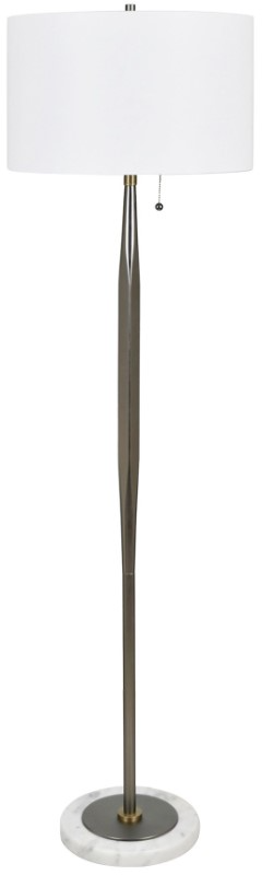 This sleek floor lamp blends crisp metalwork with a white linen drum shade and a striking marble base. The fluted column design and dual pull chains bring a touch of mid-century sophistication, while the mixed finishes create a refined look that complements both contemporary and transitional spaces.Read More