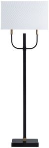 This sleek floor lamp blends symmetry and contrast with its black metal body and warm gold accents. Two curved arms support a rectangular white linen shade, creating a bold, balanced profile. A foot switch allows for easy hands-free control, while dual sockets accommodate two 60-watt bulbs.Read More