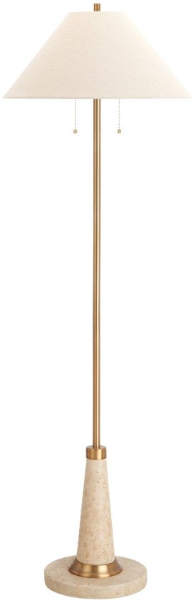 Crafted from durable resin with a matte stone-like finish, this floor lamp adds natural texture and timeless charm to any room. The tapered base is accented with warm gold details, while the oat-colored empire linen shade provides a soft, inviting glow.Read More