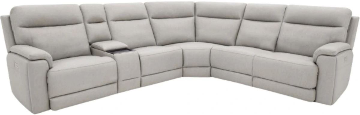 This sectional adorned in our jumbo dove fabric, is a perfect addition to any living area. Equipped with a wireless charging console and steel seat box, you can relax in style.Read More