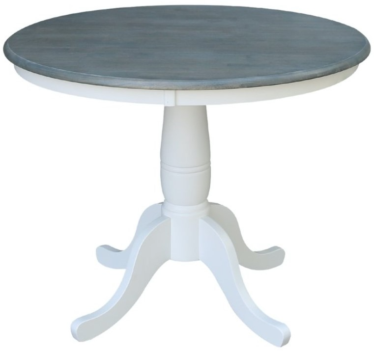 The John Thomas Furniture® dining essentials heather pure white round dining table features a classic round heather white top with a white traditional pedestal base, crafted from solid wood for lasting durability, and includes an extension leaf to accommodate extra guests, blending timeless style with everyday functionality.Read More