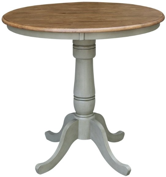 John Thomas Furniture® Dining Essentials round dining table features a classic round top in a warm hickory finish with a sturdy stone-tone traditional pedestal base, two 9" drop leaves for flexible seating, and solid parawood construction that blends timeless style with everyday durability.Read More