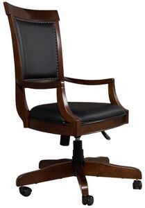 Sit in comfort and style while working from home or your office with the Brayton Manor Jr executive desk chair. Crafted of poplar solids, this piece features a cognac finish, casters for easy maneuvering, and is upholstered in black PVC with a nail head trim.Read More