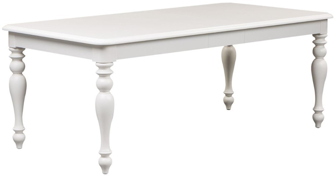 Gather the family around the Summer House rectangular leg table. Crafted of poplar and rubberwood solids, this piece features an oyster white finish, one removeable 12" leaf to accommodate guests or a larger family and is anchored by beautifully round turned legs. This item has an alternate finish, sure to compliment any space effortlessly.Read More