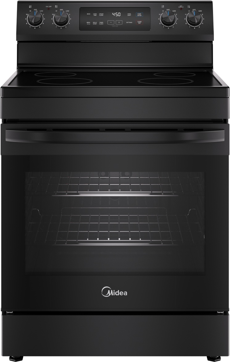 The Midea 6.3 cu. ft. Freestanding Electric Range brings together a contemporary design, a flexible 4-element cooktop, a spacious oven, and a convenient Steam Cleaning function. Bring home this state-of-the-art range today to enhance the look and feel of your kitchen.Read More