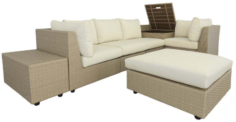 | Included In Set | Corner Chair, Armless Chair, Ottoman, Rectangular End Table, Corner Storage Table |